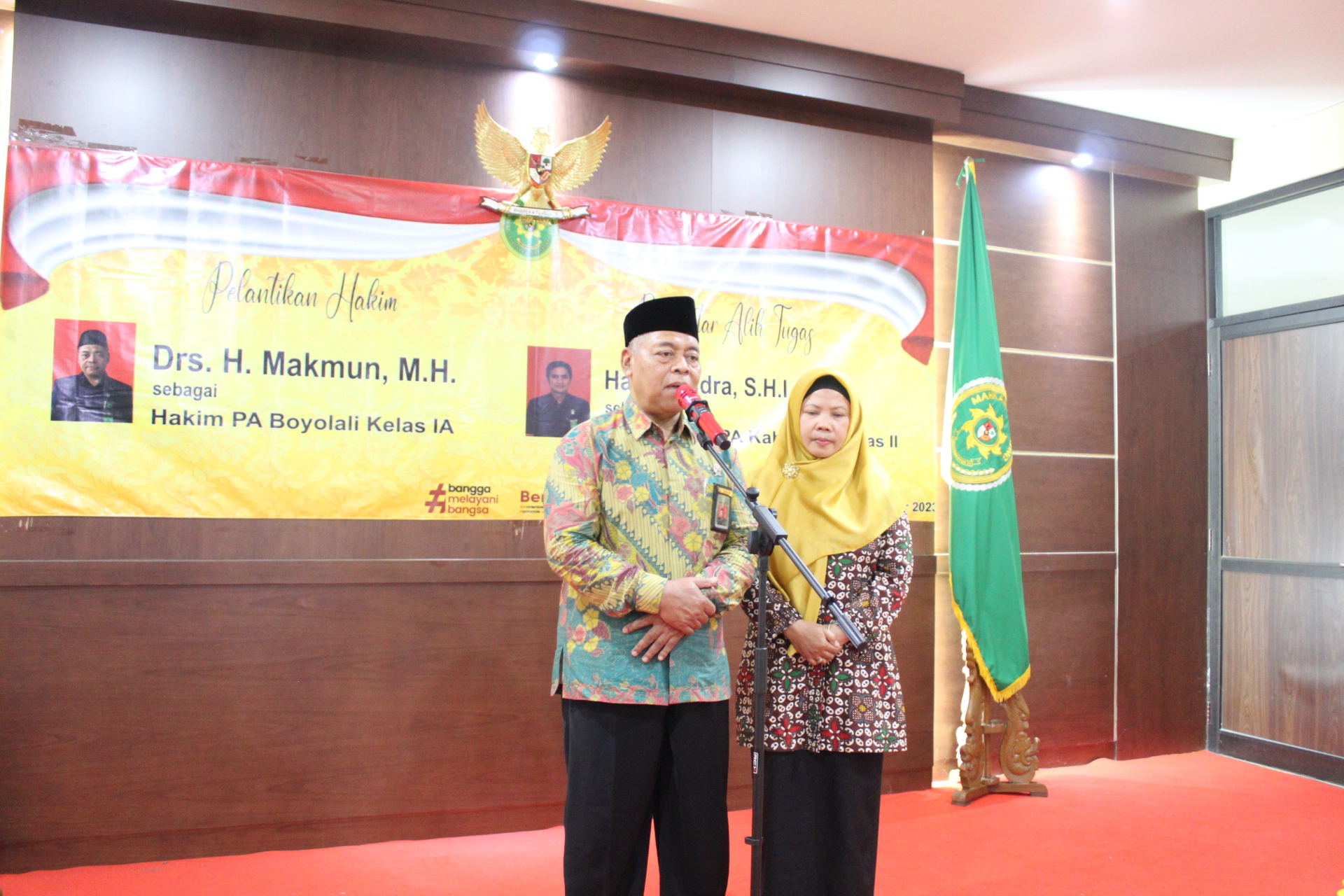 Sebagai acara pamungkas, Drs. Media Rinaldi, M.A. selaku Ketua Pengadilan Agama Boyolali memberikan sambutan. Beliau mengucapkan selamat datang kepada Drs. H. Makmun, M.H. yang baru saja dilantik. Meskipun nanti bertugas di Pengadilan Agama Karangnyar, beliau berpesan untuk melaksanakan tugas dengan baik. Karena bagaimanapun juga statusnya adalah sebagai Hakim Pengadilan Agama Boyolali. Dimana jika ada yang kurang baik nantinya Ketua Pengadilan Agama Boyolali yang tetap akan bertanggung jawab.