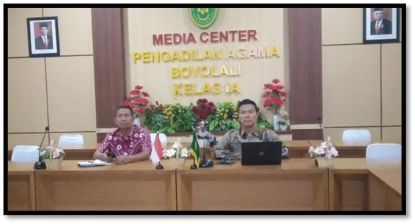 Bertempat di Media Center Pengadilan Agama Boyolali Ketua, dan  Hakim, mengikuti Pembinaan Bidang Teknis dan Adminitrasi Yudisial secara daring melalui zoom pada Senin 9 Oktober 2023.