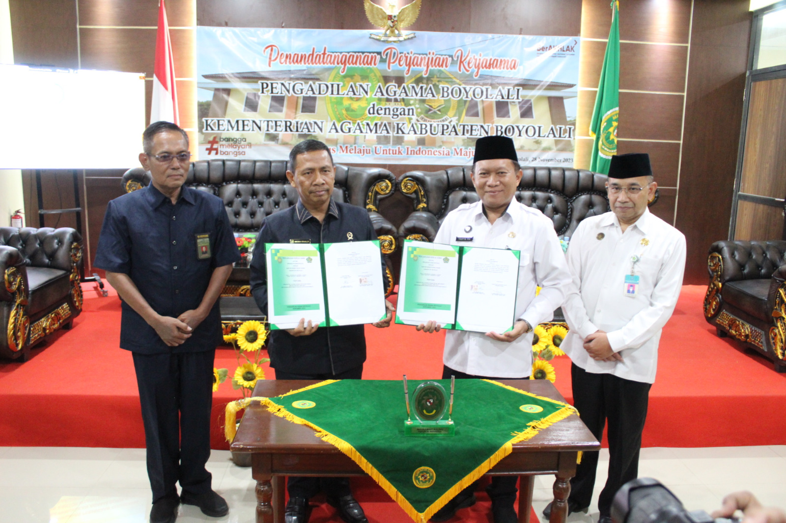 Bertempat di Aula Pengadilan Agama Boyolali, pada hari Selasa tanggal 28 November 2023 Pengadilan Agama Boyolali melakukan Penandatanganan Perjanjian Kerjasama dengan Kantor Kementerian Agama Kabupaten Boyolali sebagai upaya peningkatan kualitas layanan bagi masyarakat pencari keadilan.