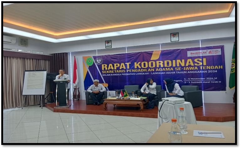 Semarang, 4 s.d. 5 November 2024. Sekretaris Pengadilan Agama Boyolali, Fitri Sayekti, S.T., S.H., M.M., hadir mengikuti rapat koordinasi yang diadakan oleh Pengadilan Tinggi Agama Semarang.