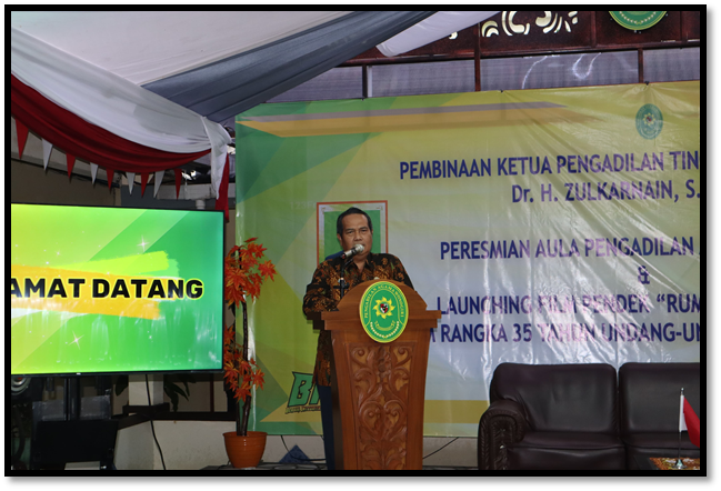 Bapak Ketua Pengadilan Tinggi Agama Semarang secara simbolis meresmikan aula terbuka “Nyawiji” Pengadilan Agama Wonogiri serta me-launching film pendek “Rumah di Atas Pasir” produksi Pengadilan Agama Wonogiri dalam rangka 35 Tahun Undang-Undang Peradilan Agama. Seusai meresmikan aula dan me-launching film pendek, acara dilanjutkan dengan pembinaan oleh Bapak Ketua Pengadilan Tinggi Agama Semarang.