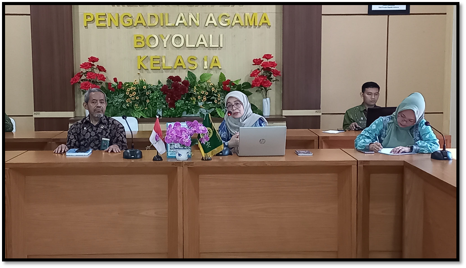 Kamis, 13 Maret 2025 – Semangat dan Komitmen Pengadilan Agama Boyolali dalam Pembangunan Zona Integritas Menuju Wilayah Birokrasi Bersih dan Melayani (WBBM) terlihat dari berbagai kegiatan yang dilaksanakan, mulai dari perencanaan, persiapan, pelaksanaan dan evaluasi. Kegiatan Pembangunan Zona Integritas merupakan kegiatan yang sangat penting sehingga dalam prosesnya tidak lepas dari monitoring dan evaluasi atas hasi Pembangunan yang telah dilaksanakan.