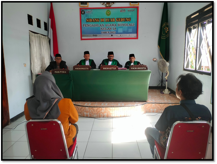 Pengadilan Agama Boyolali menggelar sidang di luar gedung atau yang sering disebut dengan sidang keliling atau Zitting Plaatz (sidang pengadilan yang dilakukan di luar gedung pengadilan). Hal ini dilakukan untuk memudahkan masyarakat yang mengalami kesulitan menjangkau gedung pengadilan karena alasan jarak, transportasi, atau biaya. Kegiatan berlangsung di Balai Desa Klego, Kecamatan Klego, Kabupaten Boyolali hari Jum'at tanggal 11 Juli 2025. Bertindak sebagai Ketua Majelis dalam persidangan adalah YM. Drs. H. Muhammad Iskandar Eko Putro, M.H., dengan beranggotakan YM. Drs. Syiar Rifai dan YM. Drs. Asrori, S.H., M.H., serta dibantu oleh Panitera Pengganti Himawan Antoni, S.H., M.H., dengan agenda sidang pada hari tersebut adalah 15 perkara.