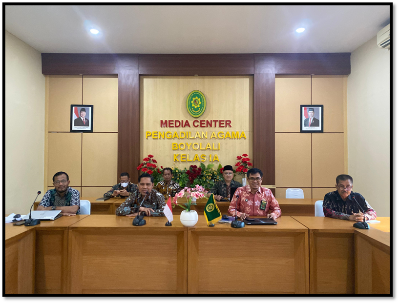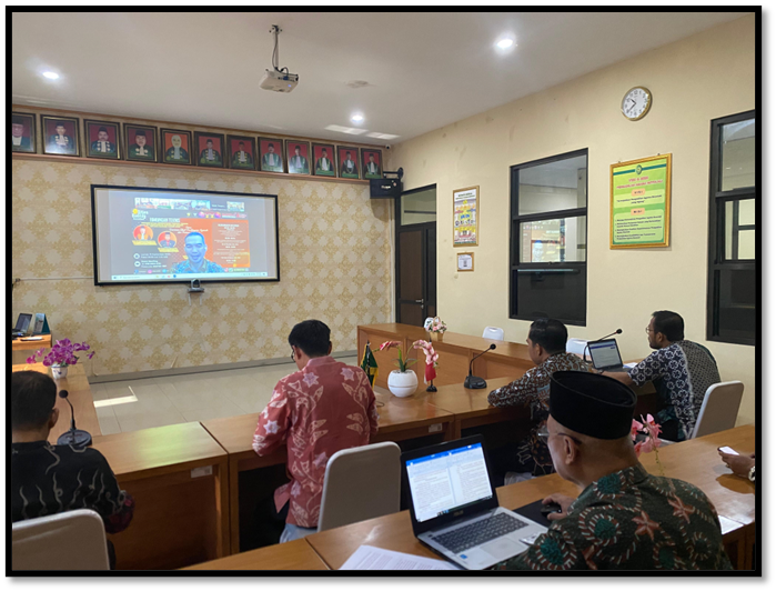 Bertempat di ruang Media Center Pengadilan Agama Boyolali, Ketua Pengadilan Agama Boyolali YM. Senen, S.Ag, M.H., bersama Wakil Ketua, para Hakim, dan Seluruh Tenaga Teknis Pengadilan Agama Boyolali mengikuti Bimbingan Teknis yang diselenggarakan oleh Direktorat Jendral Badan Peradilan Agama secara virtual (zoom), Jumat, 19 September 2025. Bimtek tersebut mengangkat tema “Dominasi Akad Pembiayaan Syariah dan Potensi Sengketa”. Peserta dari berbagai pengadilan di seluruh Indonesia, mulai dari tingkat pertama hingga banding serta Mahkamah Syariah Aceh, turut serta dalam kegiatan ini.