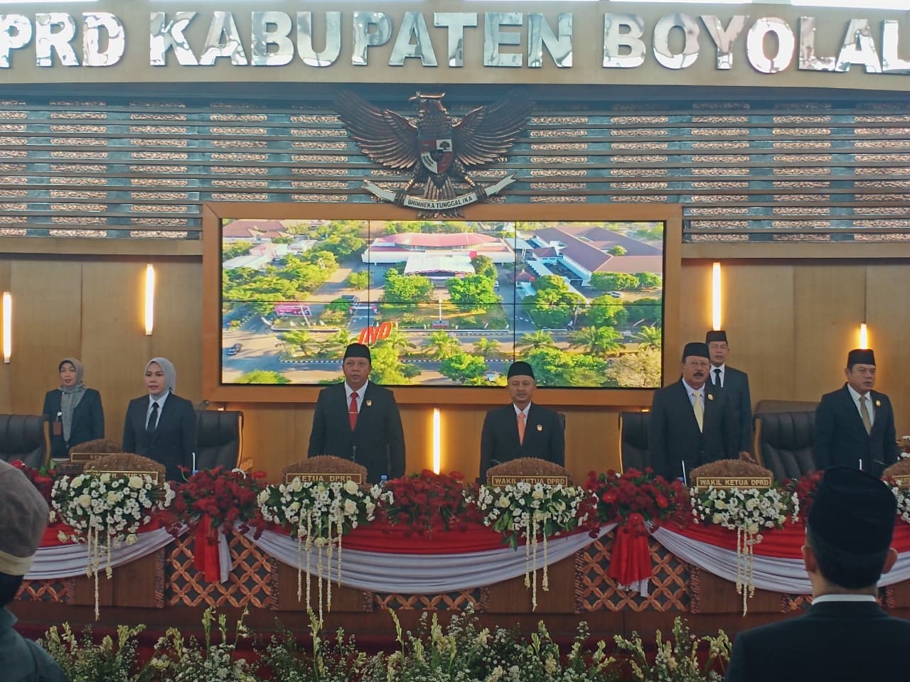 Rapat paripurna digelar secara sederhana dan khidmat dengan dipimpin oleh Ketua DPRD Kabupaten Boyolali, Susetya Kusuma Dwi Hartanta, didampingi oleh Wakil Ketua DPRD Kabupaten Boyolali, Nur Arifin, Fuadi, dan Aziz Aminudin. Kegiatan ini dihadiri oleh unsur Forkopimda serta perwakilan instansi dan lembaga terkait di Kabupaten Boyolali.