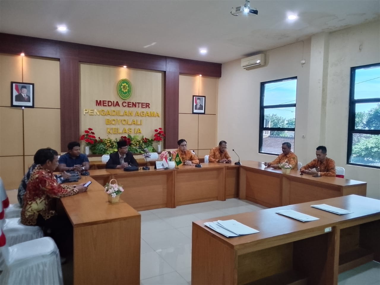 Boyolali, 2 Januari 2025 - Pengadilan Agama (PA) Boyolali melaksanakan Penandatanganan Perjanjian Kerja Sama (PKS) Pengadaan Jasa Layanan Bantuan Hukum (POSBAKUM) Tahun Anggaran 2026 pada Jumat (2/1). Kegiatan ini dilaksanakan di ruang Media Center PA Boyolali antara Pengadilan Agama Boyolali dengan Majelis Hukum, HAM dan Kajian Kebijakan Publik Pimpinan Daerah Muhammadiyah Surakarta sebagai lembaga pemenang seleksi pengadaan layanan POSBAKUM.