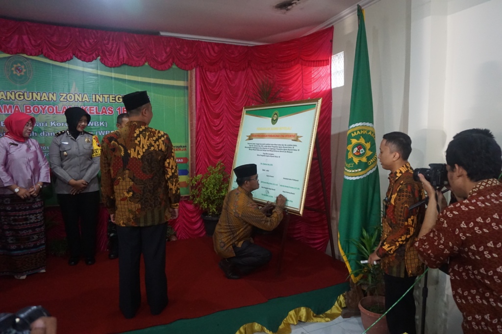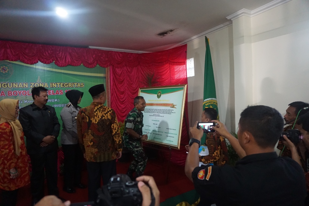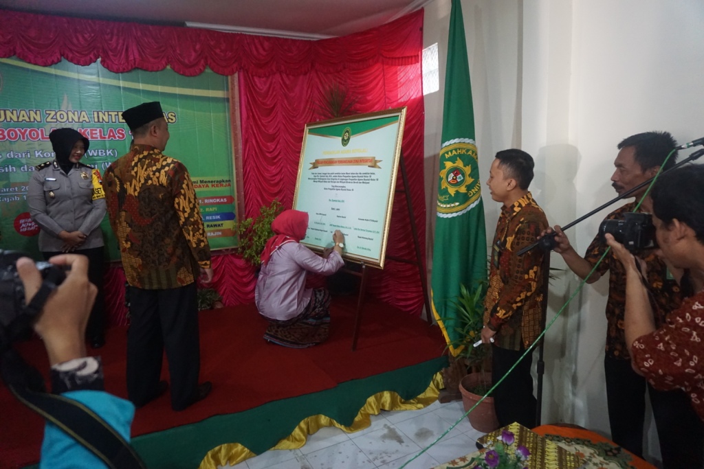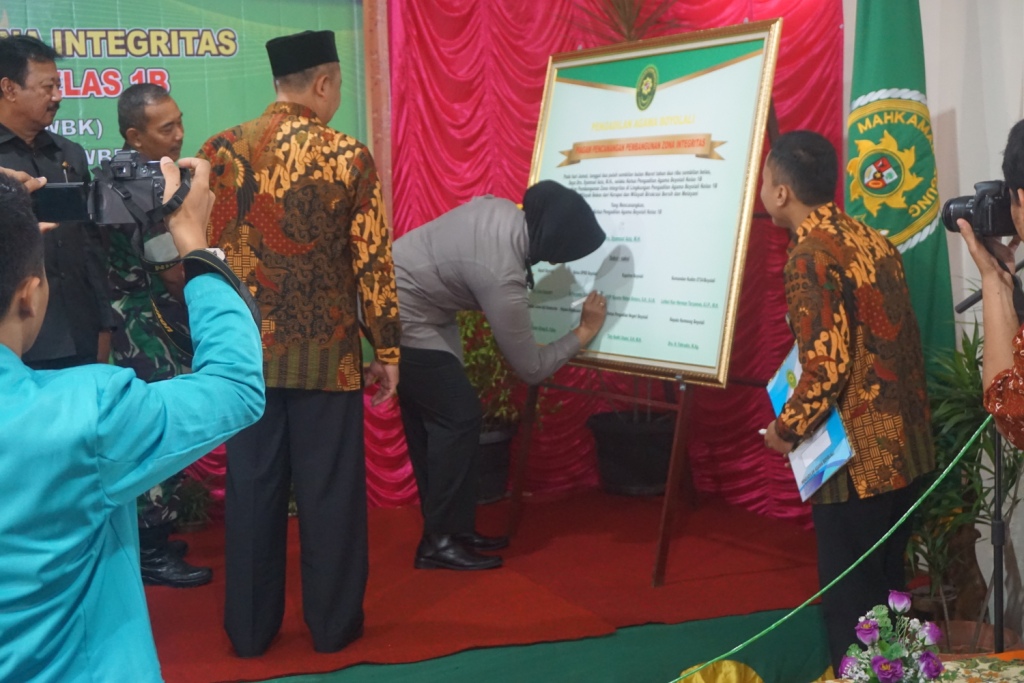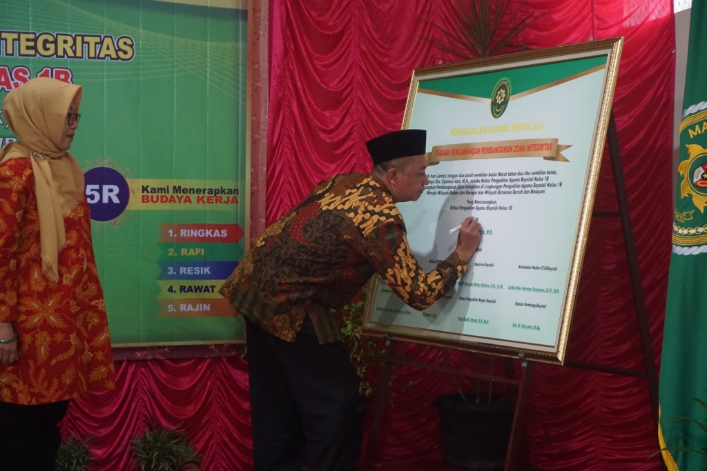 Dalam acara tersebut juga dilakukan pengucapan Pakta Integritas yang dipimpin oleh Ketua Pengadilan Agama Boyolali yang langsung diikuti oleh seluruh pegawai Pengadilan Agama Boyolali. Kemudian dilanjutkan dengan penandatangan Pencanangan Pembangunan Zona Integritas menuju Wilayah Bebas dari Korupsi dan Wilayah Birokrasi Bersih dan Melayani oleh Ketua Pengadilan Agama Boyolali dan juga saksi - saksi diantaranya Bupati Boyolali, Ketua DPRD Boyolali, Kapolres Boyolali, Komandan Kodim Boyolali, Komandan Lanud Adi Soemarmo, Kepala Kejaksaan Negeri Boyolali, Ketua Pengadilan Negeri Boyolali, dan Kepala Kemenag Boyolali.