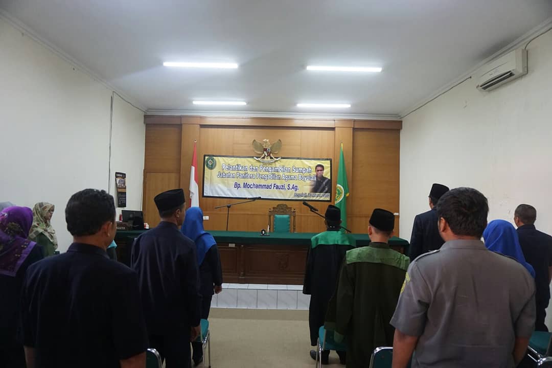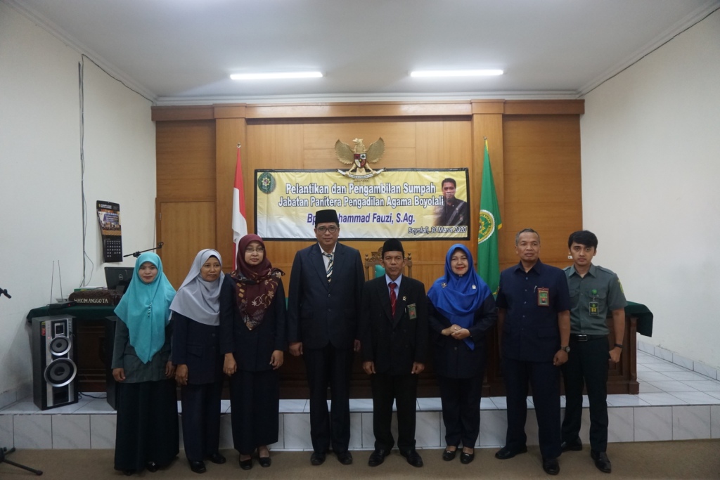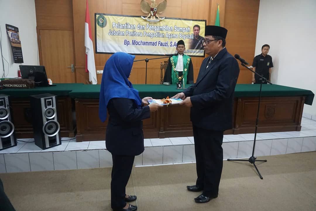Berdasarkan Surat Keputusan Direktur Jenderal Badan Peradilan Agama nomor : 407/DjA/Kp.04.6/SK/II/2020 tanggal 20 Februari 2020 tentang Pengangkatan / Pemindahan dalam Jabatan Kepaniteraan di Lingkungan Peradilan Agama, Ketua Pengadilan Agama Boyolali mengambil sumpah jabatan dan melantik Mochammad Fauzi, S.Ag sebagai Panitera Pengadilan Agama Boyolali pada hari Senin tanggal 30 Maret 2020.