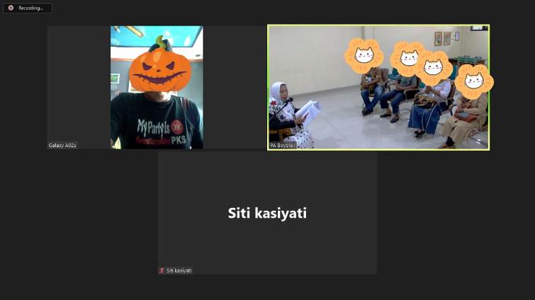 Maka dalam pelaksanaan mediasi ke 2 (dua), perkara Nomor 1414/Pdt.G/2022/PA.Bi, Pengadilan Agama Boyolali menfasilitasi kegiatan tersebut bertempat di Ruang mediasi melalui aplikasi Zoom meeting. Kegiatan Tersebut dihadiri oleh Penggugat 2 orang dan Tergugat 2 orang secara langsung, Serta 1 orang melalui aplikasi Zoom meeting yang berkedudukan tinggal di Jakarta.