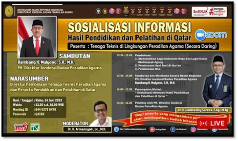 Foto : Kegiatan Sosialisasi dan Informasi Hasil Pelatihan di Qatar secara Daring