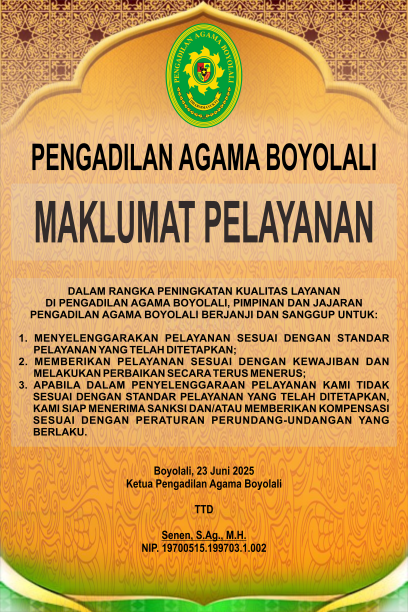 Berangkat dari niat untuk membangun kepercayaan masyarakat terhadap badan peradilan, meningkatkan kualitas pelayanan bagi masyarakat khususnya pencari keadilan yang diselenggarakan oleh Mahkamah Agung RI dan badan-badan peradilan di bawahnya dengan sebaik-baiknya, dan untuk memenuhi amanat UU RI No. 25 Tahun 2009 tentang Pelayanan Publik, maka pada tanggal 9 Februari 2012 Ketua Mahkamah Agung RI telah mengeluarkan Surat Keputusan Ketua Mahkamah Agung No. 026/KMA/SK/II/2012 tentang Standar Pelayanan Peradilan sebagai dasar bagi setiap satuan kerja pada seluruh badan peradilan dalam memberikan pelayanan kepada publik.