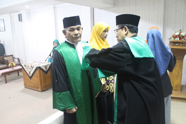Selanjutnya Ketua Pengadilan Tinggi Agama Jawa Tengah menyampaikan “Selamat memasuki masa Purnabhakti dan Selamat atas keberhasilan dalam mengakhiri masa bakti ini dengan selamat dan tanpa satu halangan apapun, dan kita berharap dan berdoa semoga beliau akan senantiasa selalu dalam lindungan-Nya dan masih tetap selalu dapat mendharmabaktikan ilmu pengetahuan beliau dalam rangka penegakan hukum dan pembangunan hukum.