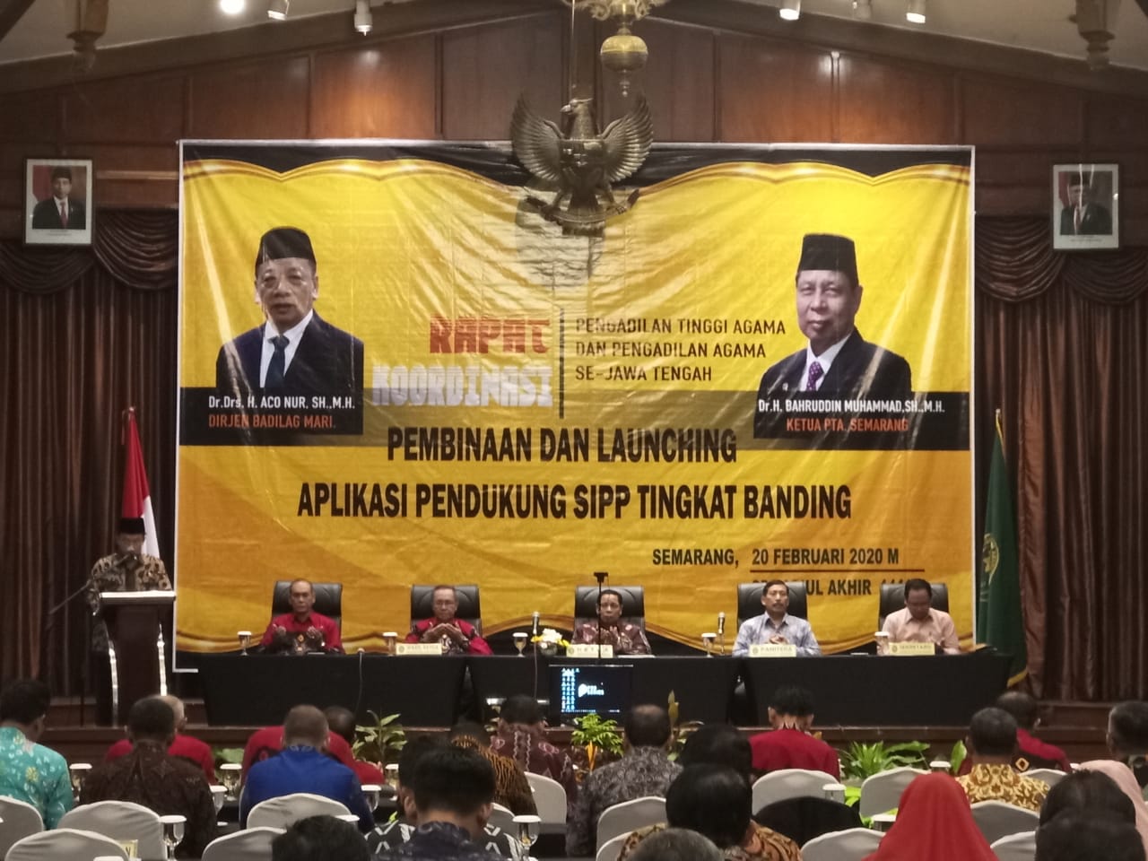 Pada Kamis 20 Februari 2020 semua Pimpinan Peradilan Agama se Jawa Tengah (Ketua, Wakil Ketua, Hakim Tinggi, Panitera, Sekretaris, Ketua PA, Panitera dan Sekretaris PA) melaksanakan Rapat Koordinasi di Patra Hotel Semarang. Dalam kesempatan tersebut dilakukan pula Pembinaan oleh Direktur Jenderal Badan Peradilan Agama Mahkamah Agung R.I. secara jarak jauh (teleconference) bersama Pengadilan Tinggi Agama Kupang dan Pengadilan Tinggi Agama Palangkaraya yang sekaligus melaunching (meresmikan pemanfaatan) aplikasi pendukung SIPP Tingkat Banding.