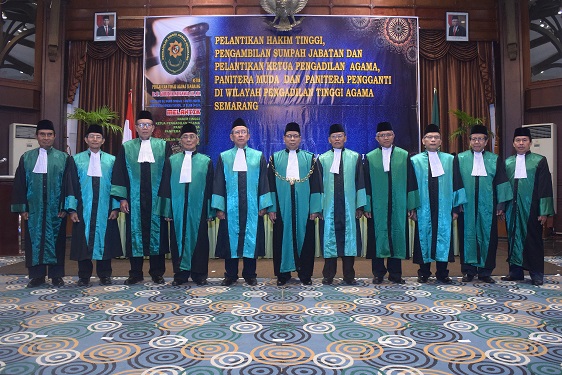 Setelahnya Ketua PTA Semarang melakukan pengambilan sumpah jabatan dan pelantikan 8 (delapan) orang Ketua Pengadilan Agama wilayah hukum PTA Semarang, yaitu: Drs. Mohammad Moenawar Subkhi, M.H. (sebagai Ketua PA Batang Kelas I B), Dr. Muhammad Fauzi Ardi, S.H., M.H. (sebagai Ketua PA Sukoharjo Kelas I B), Drs. H. Imam Syafi’i, S.H., M.H. (sebagai Ketua PA Karanganyar Kelas I B), Drs. H. Ayip, M.H. (sebagai Ketua PA Blora Kelas I B), Drs. Mahmudin, S.H., M.H. (sebagai Ketua PA Boyolali Kelas I B), Drs.Faiq,M.H.(sebagai Ketua PA Jepara Kelas IB), Drs. Suyudi, M.Hum. (sebagai Ketua PA Wonosobo Kelas I A) dan Drs. H. Cholis, S.H., M.H. (sebagai Ketua PA Kendal Klas I A). Yang kemudian dilanjutkan dengan acara penyaksian serah terima jabatan dari pejabat lama, yaitu kepada pejabat yang baru dilantuk, yaitu: Drs. Subroto, S.H., M.H. Ketua PA Batang Kelas I B yang mutasi sebagai Wakil Ketua PA Purwodadi Kelas I A, Drs. H. Sarmin, M.H., Ketua PA Kendal Kelas I A yang promosi sebagai Ketua PA Depok Kelas I A, Drs. Muh Zainuddin, S.H., M.H. Ketua PA Wonosobo yang promosi sebagai Ketua PA Sleman Kelas I A, Drs. Imam Syafi’i, S.H., M.H., Ketua PA Jepara Kelas I B yang mutasi sebagai Ketua PA Karanganyar Kelas I B, Drs. Asep Mohamad Ali Nurdin, M.H., Ketua PA Boyolali Kelas I B yang mutasi sebagai Wakil Ketua PA Garut Kelas I A, Dra. Hj. Malihadza, S.H., M.H., Ketua PA Blora Kelas I B yang mutasi sebagai Wakil Ketua PA Pati Kelas I A, dan Drs. M. Danil, M.A. Ketua PA Karanganyar Kelas I B yang mutasi sebagai Wakil Ketua PA Surakarta Kelas I A.