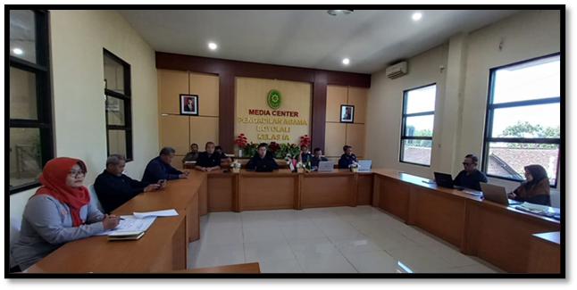 Boyolali, 12 Juli 2023 Pengadilan Agama Boyolali melaksanakan rapat terbatas bagian kepaniteraan yang dipimpin oleh Wakil Ketua Pengadilan Agama Boyolali Rogaiyah, S.Ag., M.H. dan diikuti oleh seluruh Hakim, Panmud, Panitera Pengganti, Jurusita/ Jurusita Pengganti, dan Kasir diruang media center.