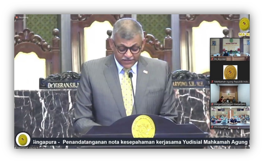 gan ini merupakan tindak lanjut kerja sama Mahkamah Agung Republik Indonesia dan Mahkamah Agung Singapura yang mulai diinisiasi pada Maret 2023 lalu.