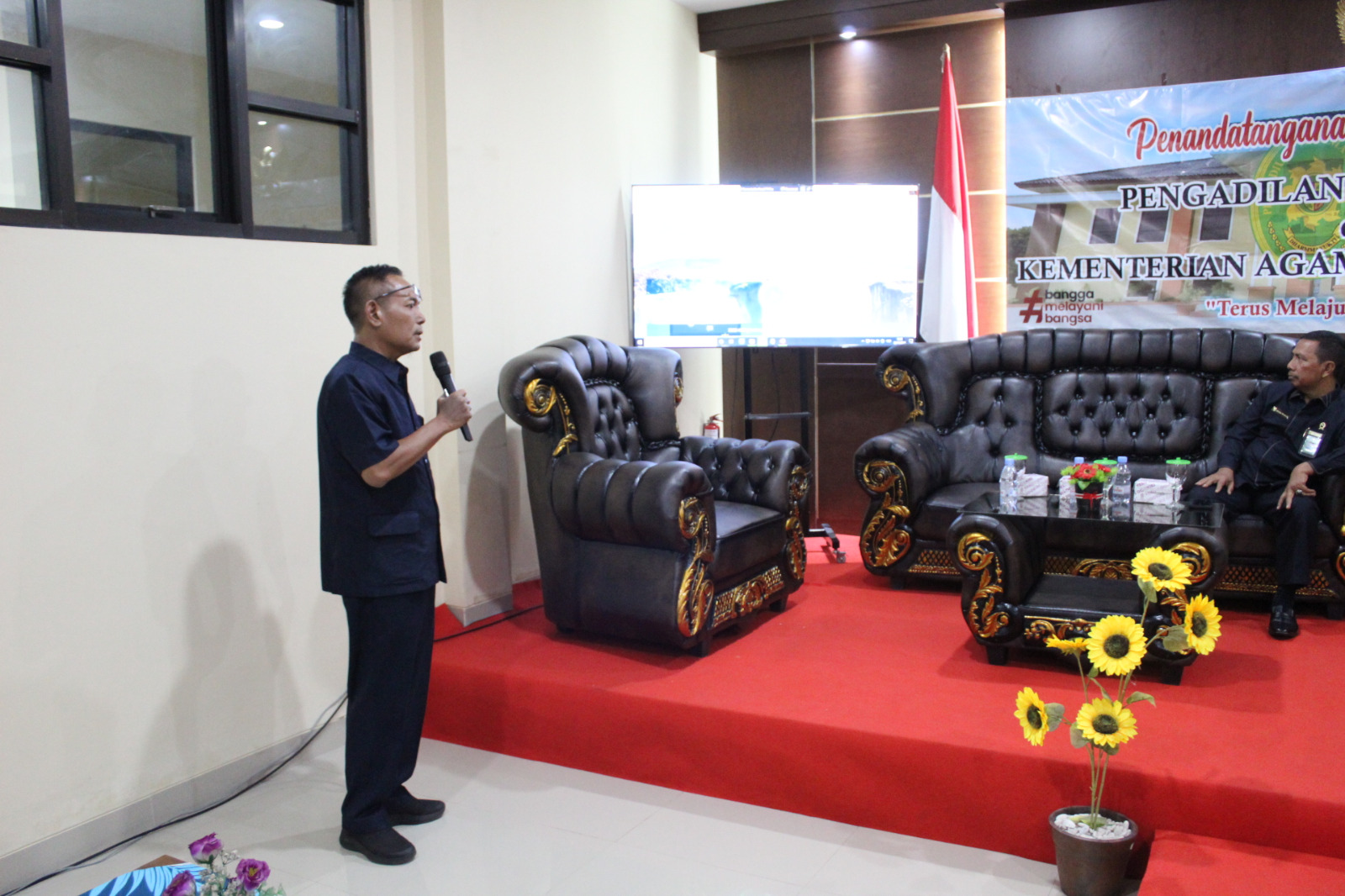 Seremonial tersebut diawali dengan pembukaan, pembacaan do'a dan dilanjutkan dengan sambutan. Sambutan yang pertama disampaikan oleh Kepala Kantor Kementerian Agama Kabupaten Boyolali, H. Taufiqur Rahman, S.Ag., M.S.I. Dalam sambutannya, Kepala Kantor Kementerian Agama Kabupaten Boyolali menyatakan kegembiraan serta apresiasi yang tingi atas dicapainya kerjasama ini. Selain sebagai langkah riil untuk mewujudkan kualitas layanan prima untuk masyarakat pada kedua lembaga, juga mempererat silaturahmi dan komunikasi kedua belah pihak. Dimana komunikasi tersebut sangatlah penting selain karena latar belakang sejarah yang sama, juga karena core bisnis proses antara Peradilan Agama dengan Kementerian Agama khususnya Kantor Urusan Agama, saling berhubungan.