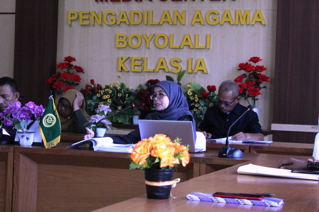 Ketua Pengadilan Agama Boyolali Drs. Media Rinaldi, M.A. dalam sambutannya menyampaikan kegiatan monitoring evaluasi ini memang perlu dilaksanakan terkait dengan kesesuaian pelaksanaan apa yang menjadi kerjasama sehingga kendala-kendala di lapangan nanti yang berhubungan dengan pelaksanaan persidangan dari surat tercatat itu dapat diminimalisir sesuai dengan apa yang telah diperjanjikan dalam PKS antara PA Boyolali dengan PT Pos Boyolali.