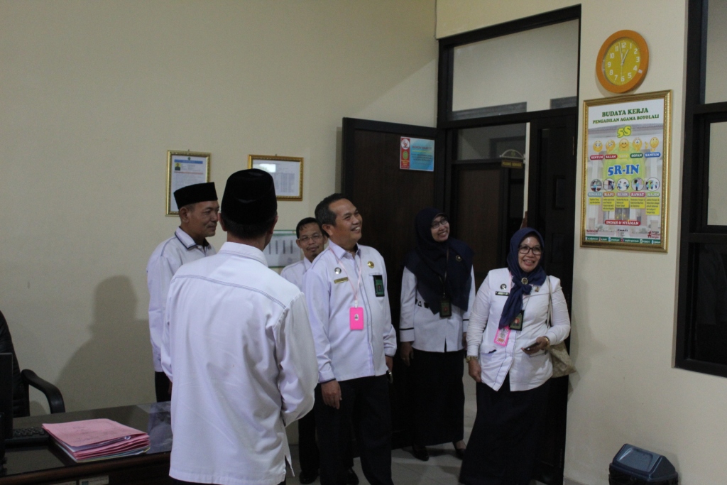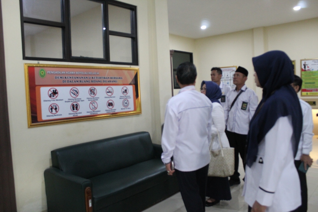 Setibanya di kantor Pengadilan Agama Boyolali, Ketua dan Sekretaris PTA Semarang dengan didampingi oleh Ketua, Hakim, Panitera dan Sekretaris PA Boyolali berkesempatan untuk melihat gedung kantor secara keseluruhan beserta fasilitas-fasilitas yang dimiliki PA Boyolali. Dimulai dari lantai satu pada Pojok Baca, ruang tunggu Pengacara, ruang Kesehatan, ruang Mediasi, ruang Sidang, ruang Laktasi, ruang bermain anak, ruang PTSP, ruang tunggu sidang, hingga ruang arsip perkara. Kemudian berlanjut ke lantai dua, pertama kali yang ditinjau adalah ruang tamu terbuka, ruang Media Center, ruang kerja (Ketua, Wakil, Hakim, Panitera, Sekretaris, Kesekretariatan, Juru Sita) dan terakhir Perpustakaan.