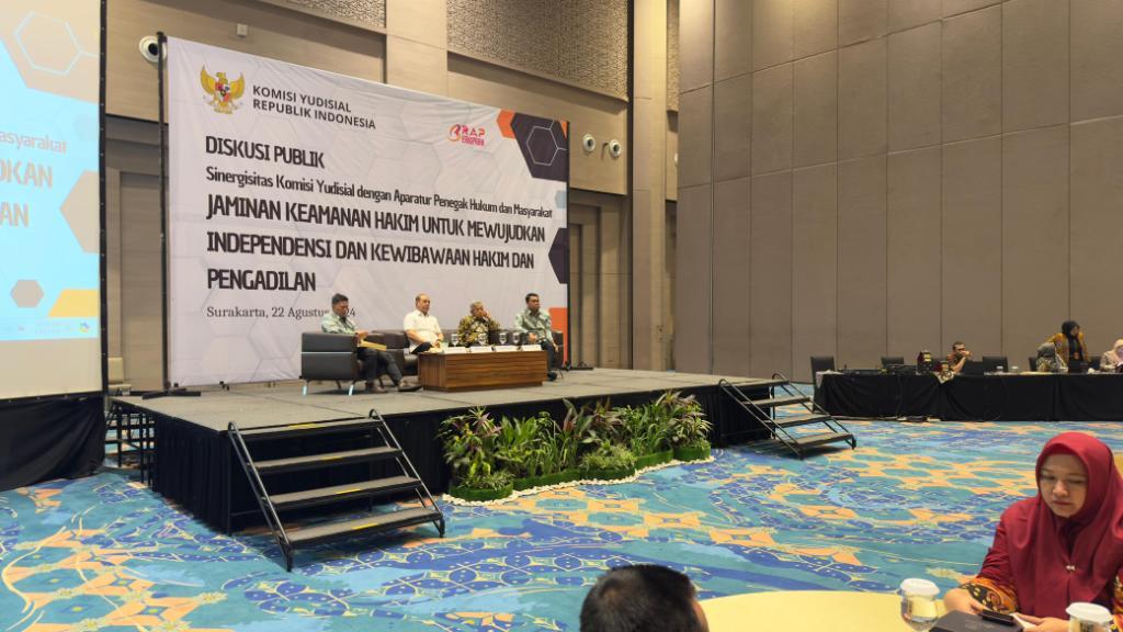 Untuk memenuhi surat Kepala Biro Rekrutmen, Advokasi dan Peningkatan Kapasitas Hakim Komisi Yudisial Republik Indonesia Nomor : 155/UND/RP/AH.01.02/07/2024 tanggal 29 Juli 2024 perihal Undangan Peserta Diskusi Publik, pada hari Kamis tanggal 22 Agustus 2024, Ketua Pengadilan Agama Boyolali, H. Zumrowi, S.Ag., M.H mengikuti kegiatan Diskusi publik dalam rangka Sinergisitas Komisi Yudisial dengan Aparatur Penegak Hukum dan Masyarakat dengan tema "Jaminan Keamanan Hakim Untuk Mewujudkan Independensi dan Kewibawaan Hakim dan Pengadilan" di Hotel Alila Solo, Jl. Slamet Riyadi No. 562, Surakarta.