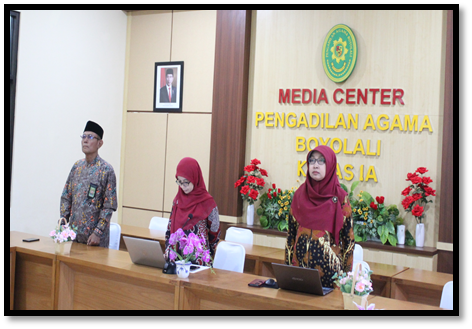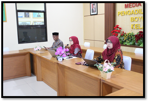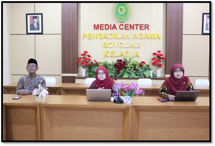Boyolali, Kamis (19-09-2024) – Pengadilan Agama Boyolali mengikuti agenda Pembukaan dan Ceramah Umum dari Ketua Mahkamah Agung YM Bapak Prof. Dr. H. Muhammad Syarifuddin, S.H., M.H. melalui video conference di Media Center PA Boyolali yang dihadiri oleh Wakil Ketua PA Boyolali YM Rogaiyah, S.Ag, M.H. , Panitera PA Boyolali Bapak Drs. Aziz Nur Eva, dan Sekretaris PA Boyolali Ibu Fitri Sayekti, S.T.,S.H.,M.M .