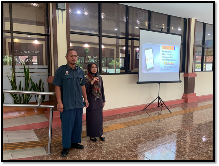 Rabu, 16 Oktober 2024, Bertempat pada Ruang Tunggu Pelayanan Terpadu Satu Pintu (PTSP) Pengadilan Agama Boyolali, Agen Perubahan PA Boyolali Tahun 2024, Fitriyadi Cahyo Nugroho, S.H. mensosialisasikan rencana aksi tentang Tutorial Pendaftaran Aku e-Court Pengguna Lain Perseorangan dengan menggunakan FERARI (Formulir Permohonan Pendaftaran Akun e-Court Secara Mandiri) Pengadilan Agama Boyolali baik secara internal maupun eksternal yaitu para pihak berperkara di PA Boyolali. FERARI merupakan inovasi layanan untuk memudahkan bagi pengguna lain perseorangan dalam melakukan pendaftaran perkara secara online dengan mendaftarkan secara elektronik tanpa datang ke kantor Pengadilan Agama Boyolali.