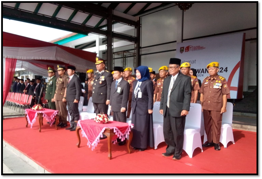 Minggu, 10 November 2024 – Dalam rangka memperingati Hari Pahlawan, Ketua Pengadilan Agama Boyolali H. Zumrowi, S.Ag, M.H. menghadiri Undangan Upacara Peringatan Hari Pahlawan dari Pemerintah Kabupaten Boyolali. Turut hadir dalam kegiatan upacara, yaitu Bupati Boyolali, seluruh Unsur Forkopimda Kabupaten Boyolali, OPD Kepala Dinas Kabupaten Boyolali, dan para tamu undangan lainnya.