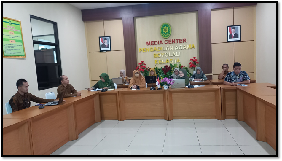 Kamis (16/1). Bertempat di Ruang Media Center, Pengadilan Agama Boyolali menggelar Rapat Monitoring dan Evaluasi (Monev) Teknologi Informasi dan Layanan Informasi. Rapat ini dilaksanakan dalam rangka meningkatkan pelayanan melalui pemanfaatan TI (Teknologi Informasi), Inovasi Layanan, Website dan Media Sosial pada Pengadilan Agama Boyolali. Kegiatan rapat ini dipimpin langsung oleh Wakil Ketua Pengadilan Agama Boyolali Ibu Rogaiyah, S.Ag, M.H., Tim Teknologi Informasi, dan Tim Pengelola Informasi dan Dokumentasi PA Boyolali.