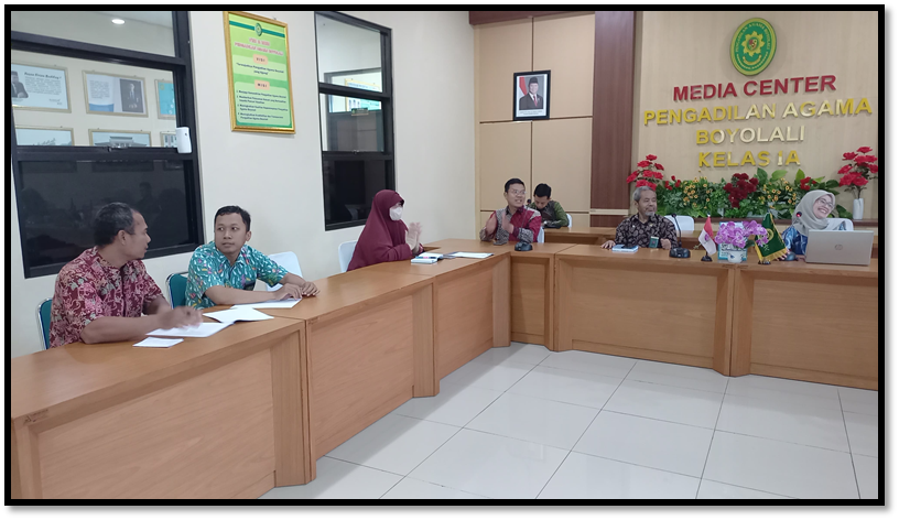 Kamis, 13 Maret 2025 – Semangat dan Komitmen Pengadilan Agama Boyolali dalam Pembangunan Zona Integritas Menuju Wilayah Birokrasi Bersih dan Melayani (WBBM) terlihat dari berbagai kegiatan yang dilaksanakan, mulai dari perencanaan, persiapan, pelaksanaan dan evaluasi. Kegiatan Pembangunan Zona Integritas merupakan kegiatan yang sangat penting sehingga dalam prosesnya tidak lepas dari monitoring dan evaluasi atas hasi Pembangunan yang telah dilaksanakan.