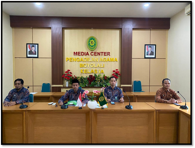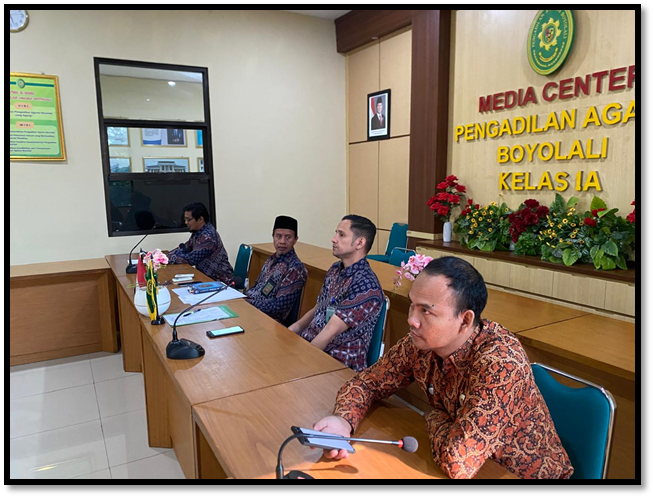 Boyolali, Jum’at, 25 Juli 2025. Tenaga Teknis Pengadilan Agama Boyolali mengikuti kegiatan Bimbingan Teknis (Bimtek) secara virtual di Ruang Media Center Pengadilan Agama Boyolali. Kegiatan ini merupakan bagian dari program nasional yang diselenggarakan oleh Direktorat Jenderal Badan Peradilan Agama dengan fokus pada isu kaum rentan yang berhadapan dengan hukum. Adapun Kegiatan ini dilaksanakan berdasarkan Surat Dirjen Badilag Nomor 1697/DJA/DL1.10/VII/2025 tanggal 16 Juli 2025. Untuk menunjang efektivitas dan efisiensi pelaksanaan, seluruh satuan kerja dibagi dalam 18 zona. Pengadilan Agama Boyolali tergabung dalam Zona 9, bersama dengan Pengadilan Agama dalam wilayah hukum Pengadilan Tinggi Agama Semarang.