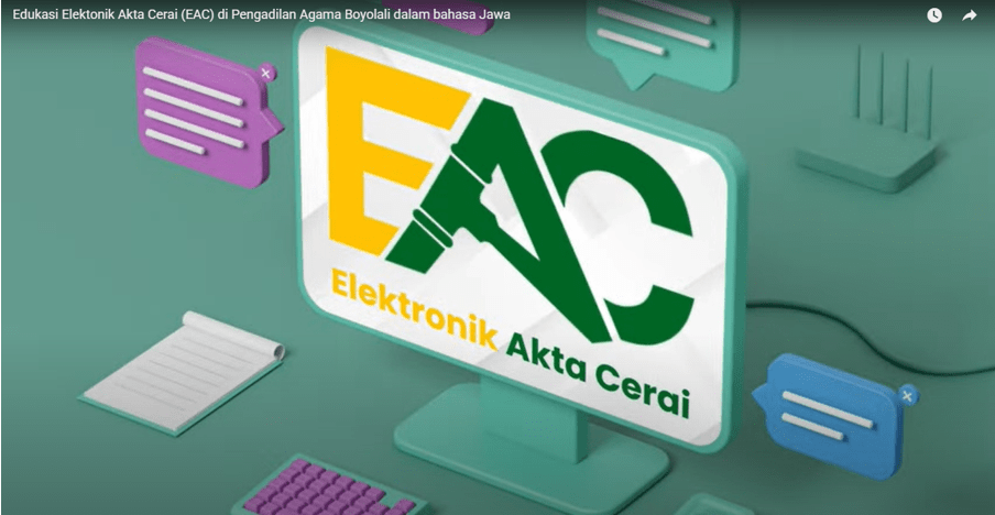 - Video Edukasi Elektonik Akta Cerai (EAC) di Pengadilan Agama Boyolali dalam bahasa Jawa : https://www.youtube.com/watch?v=b4DJt167y3o