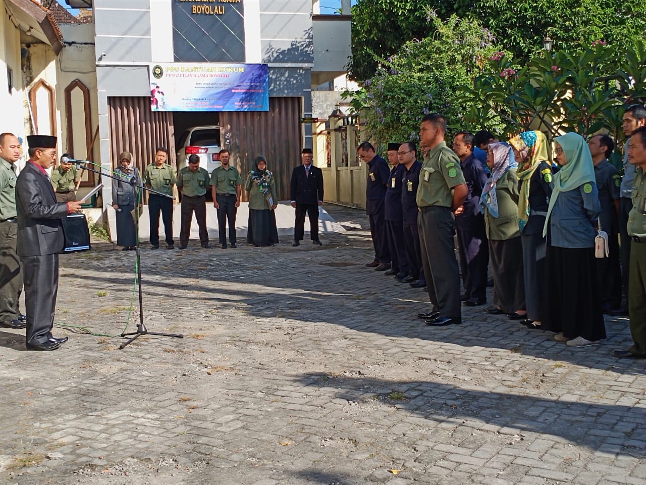 Upacara tepat dimulai pukul 08.00 WIB dan bertindak sebagai Pembina Upacara adalah Ketua Pengadilan Agama Boyolali, Drs. Asep Moh. Ali Nurdin, M.H. Acara berjalan khidmat dan berakhir pukul 08.30 WIB. Dilanjutkan dengan foto bersama seluruh peserta upacara di halaman depan kantor Pengadilan Agama Boyolali.