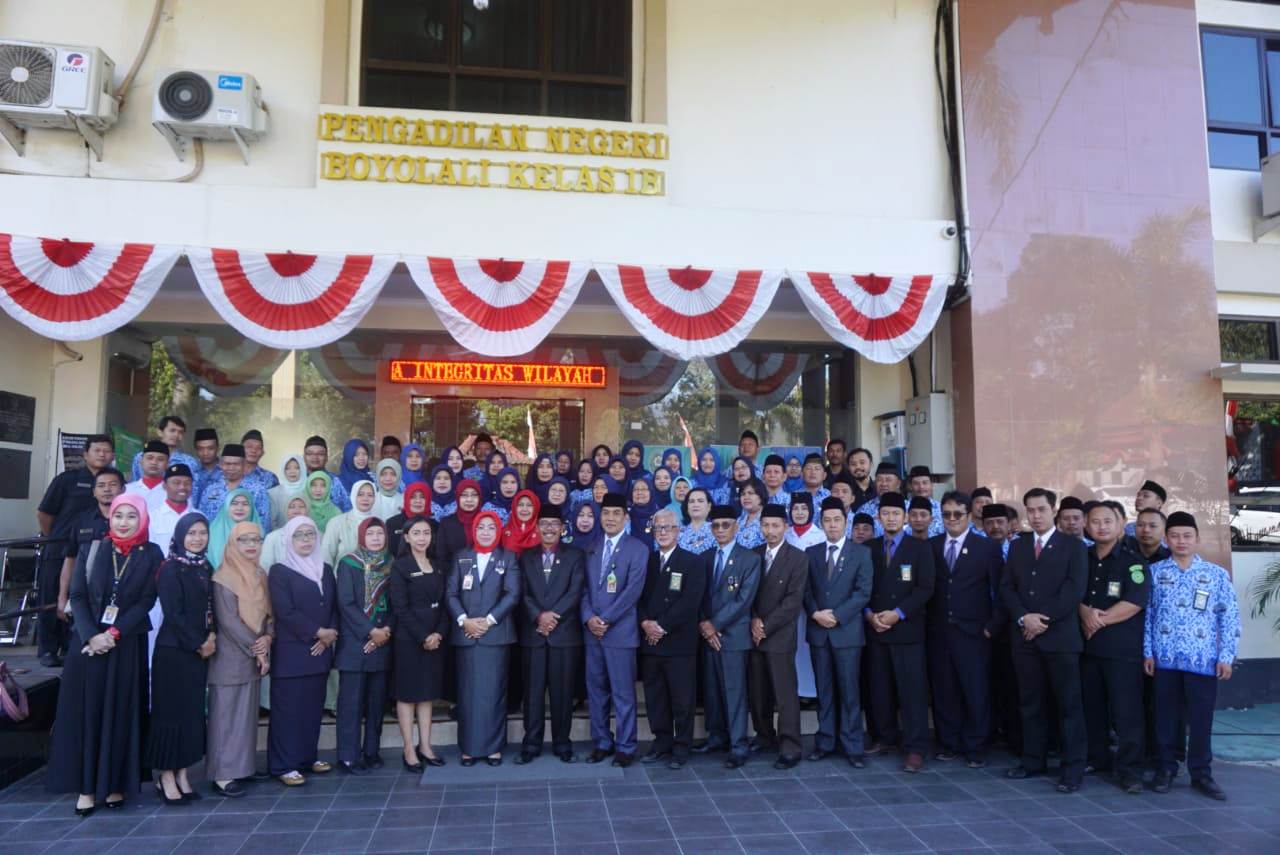 Dalam rangka memperingati HUT ke 74 Republik Indonesia, hari Sabtu tanggal 17 Agustus 2019, segenap keluarga besar Pengadilan Agama dan Pengadilan Negeri Boyolali menyelenggarakan upacara bersama. Seperti tahun - tahun sebelumnya, upacara diadakan di kantor Pengadilan Negeri Boyolali karena memiliki halaman yang luas sehingga dapat menampung peserta upacara dari kedua satker.