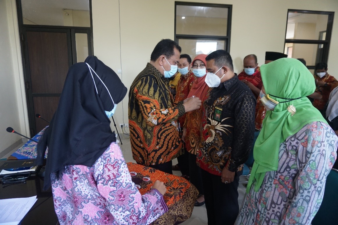 Foto Penyematan Pin kepada Ketua Tim Koordinator oleh Ketua Pengadilan Agama Boyolali
