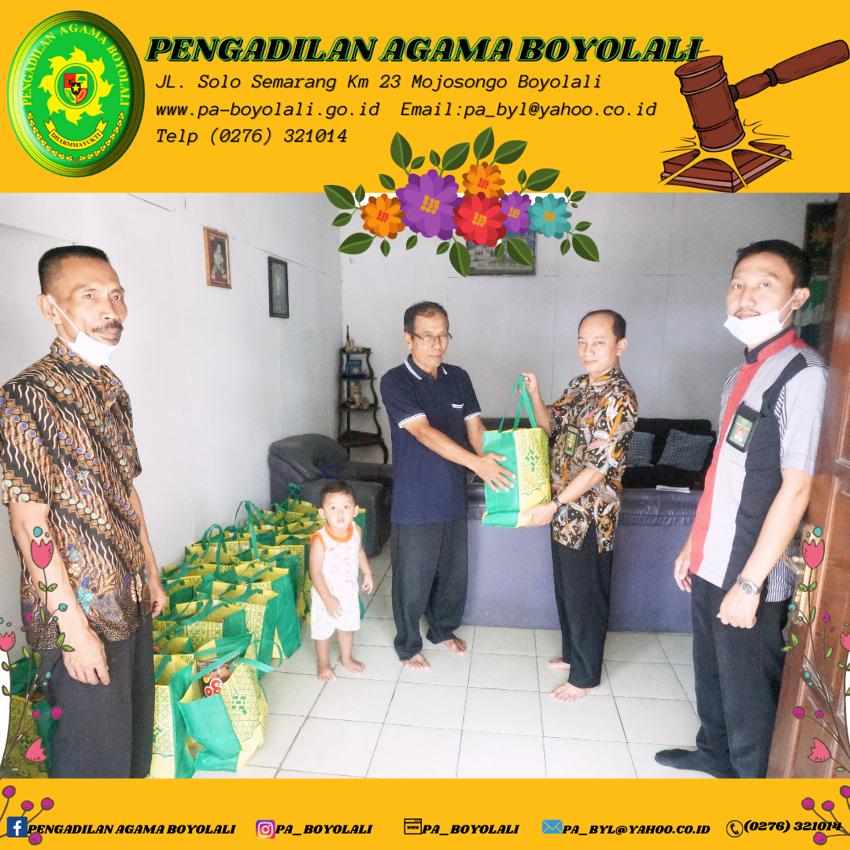 [Boyolali] Menjelang Hari Raya Idul Fitri 1442 H / 2021 M, Keluarga Besar Pengadilan Agama Boyolali melaksanakan pembagian paket sembako kepada masyarakat disekitar kantor Pengadilan Agama Boyolali pada tanggal 7 Mei 2021. Sejumlah 23 paket sembako tersebut merupakan zakat, infaq dan shodaqoh dari seluruh aparat Keluarga Besar Pengadilan Agama Boyolali. Pemberian paket sembako tersebut diserahkan oleh Bapak Mubarok, SH selaku Panitera Muda Hukum PA Boyolali yang diserahkan kepada Ketua RT setempat.