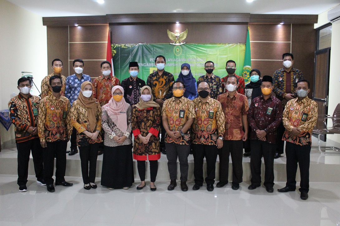 Acara Pelantikan dan Pengambilan Sumpah Jabatan tersebut dihadiri oleh Wakil Ketua, Hakim, Pejabat Struktural, Pejabat Fungsional, para Pegawai dan PPNPN Pengadilan Agama Boyolali yang berlangsung  khidmat dan berjalan lancar dengan menerapkan protocol Kesehatan pencegahan covid-19.