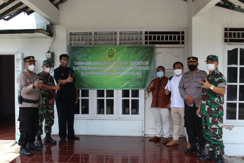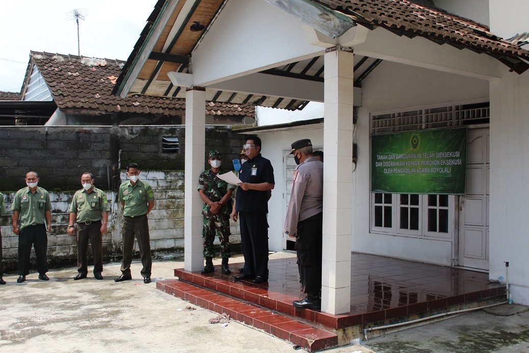 Setelah selesai eksekusi pengosongan selesai, Panitera Pengadilan Agama Boyolali menyampaikan bahwa tanah dan bangunan telah dieksekusi dan diserahkan kepada Pemohon Eksekusi.
