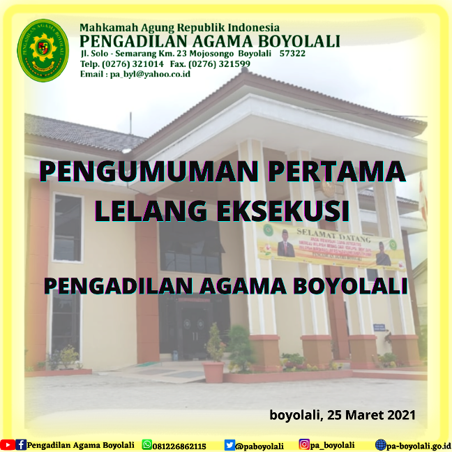PENGUMUMAN PERTAMA LELANG EKSEKUSI PENGADILAN AGAMA BOYOLALI