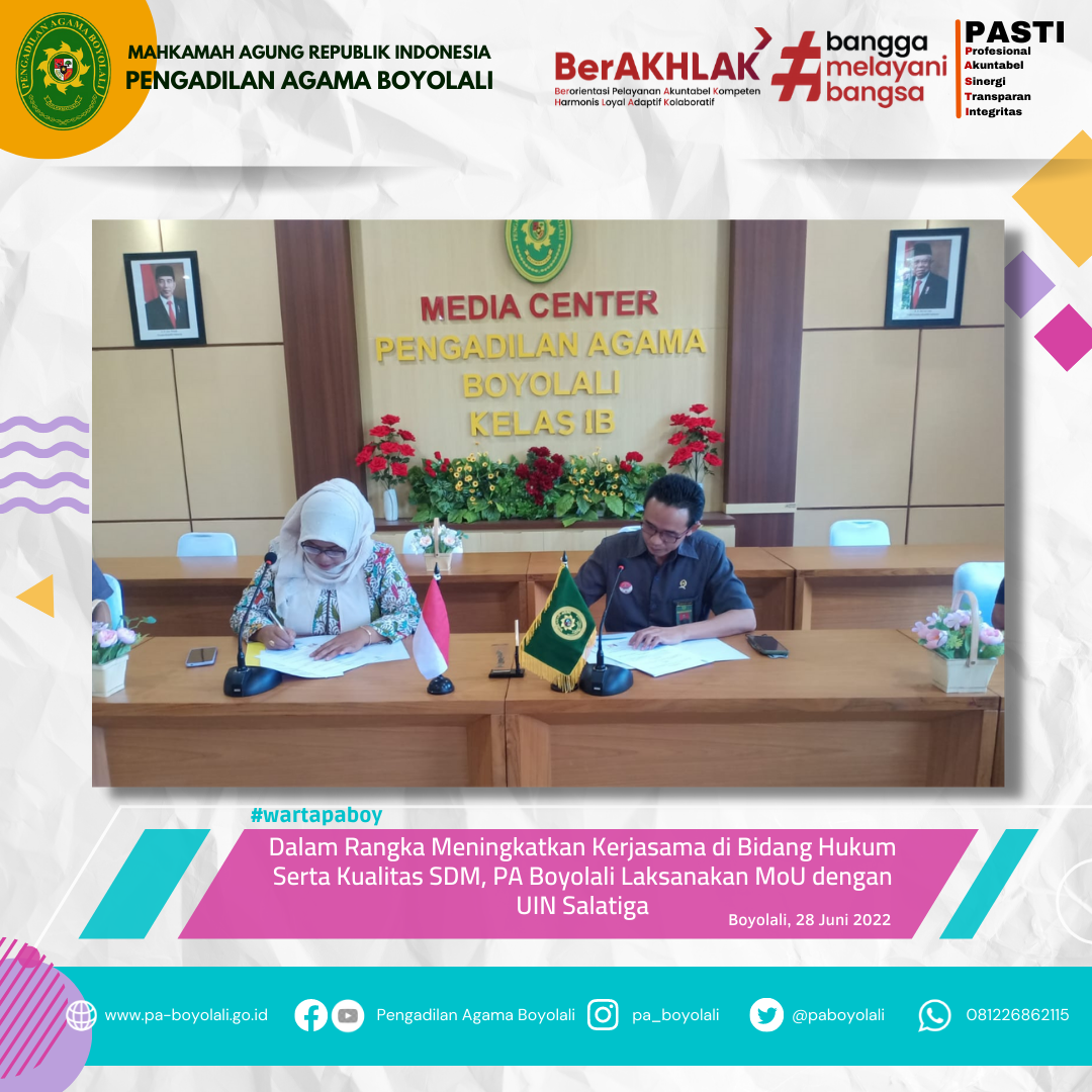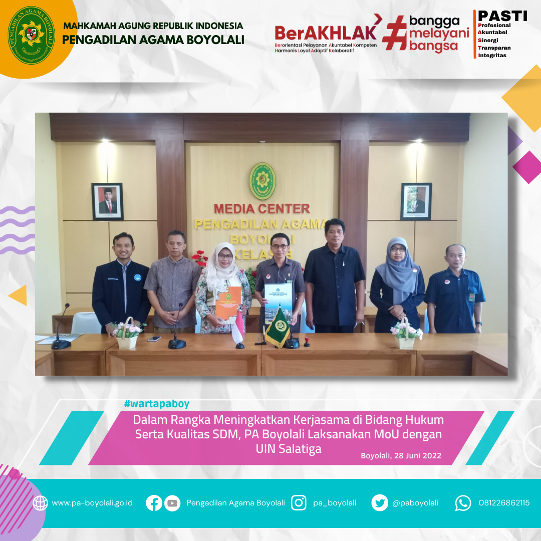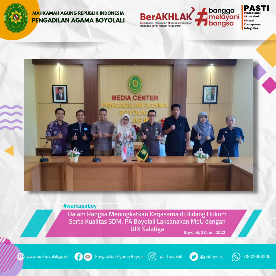 Dalam rangka meningkatkan Kerjasama di Bidang Hukum serta Kualitas SDM, PA Boyolali Laksanakan MoU dengan UIN Salatiga