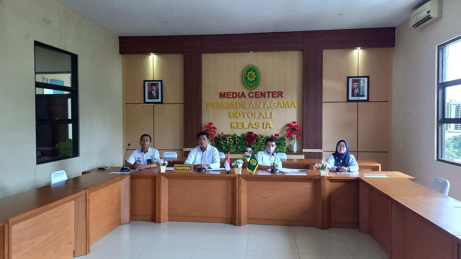 Boyolali, Senin 5 Desember 2022 pada jam 10.00 sampai dengan selesai, dalam rangka Audit Berkas Perkara dan Keuangan Pihak Ketiga dalam Rangka Serah Terima Jabatan Panitera yang dihadiri online melalui media zoom oleh Bapak Panitera Mochammad Fauzi S.Ag. serta Pegawai Pengadilan Agama Boyolali.