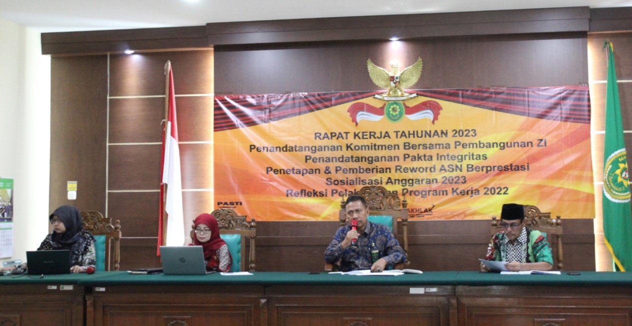Dalam rangka mewujudkan hasil kinerja yang berkualitas diperlukan suatu perencanaan yang handal, dan komitmen bersama Pengadilan Agama Boyolali untuk mewujudkan pembangunan zona integritas (ZI), oleh karena itu pada awal tahun 2023 Pengadilan Agama Boyolali Kelas 1A menggelar kegiatan Rapat Kerja Tahunan yang dilaksanakan pada hari Jumat Tanggal 6 Januari 2023 di Ruang Sidang Utama Pengadilan Agama Boyolali. Segenap aparatur Pengadilan Agama Boyolali Bapak Ibu Hakim, Pejabat Struktural, Pejabat fungsional, Pegawai dan PPNPN ikut serta dalam kegiatan tersebut, sebagai upaya melakukan perencanaan program kerja unggulan yang akan dilaksanakan pada tahun anggaran 2023.