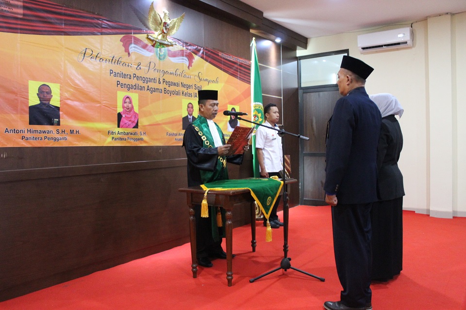Adapun Panitera Pengganti yang dilantik yaitu Fitri Ambarwati, S.H., sebelumnya sebagai Panitera Pengganti Pengadilan Agama Kebumen dan Himawan Antoni, S.H., M.H. sebelumnya sebagai Panitera Pengganti Pengadilan Agama Klaten. Adapun yang diambil sumpah janji PNS yaitu Faishal Ahmad Romadhani S.H. sebagai Analis Perkara Peradilan dan Kuni Mitsla Iqlima, A.Md.A.B sebagai Pengelola Perkara Pengadilan Agama Boyolali.