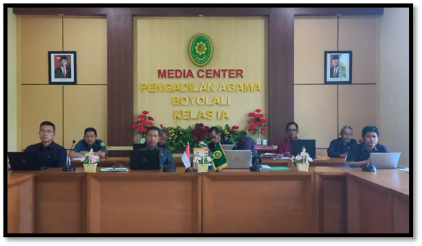 Pengadilan Agama Boyolali mengikuti kegiatan Sosialisasi dan Informasi Hasil Pelatihan di Qatar secara Daring yang dilaksanakan pada hari Rabu 14 Juni 2023 bertempat di Ruang Media Center. Kegiatan ini diikuti oleh Ketua PA Boyolali Bapak Drs. Media Rinaldi, M.A., beserta Wakil Ketua, Para Hakim, Panitera, Panitera Muda, Para Panitera Pengganti dan Staf Kepaniteraan Pengadilan Agama Boyolali.